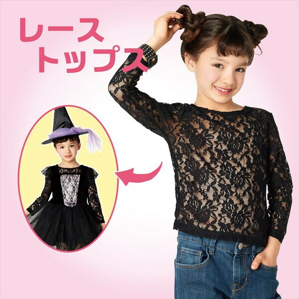 【キッズ】レーストップス【120】【ブラック】【ストレッチレース】【レース】【インナー】【ハロウィン】【コスプレ】【コスチューム】【衣装】【仮装】【かわいい】
