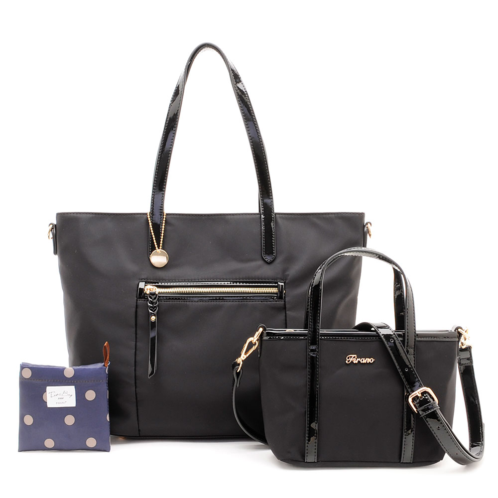オンオフ使える大きめトートバッグとミニバッグ+内側のポケットに収納できるパッカブルナイロンエコバッグの3点セットです。