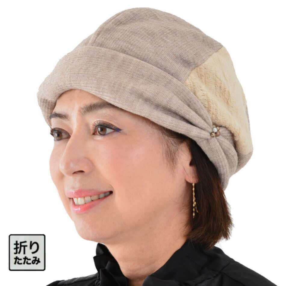 【送料無料】帽子 レディース ニット 秋 秋冬 ニット帽 ミセス シニア ギフト プレゼント 母の日 室内でも被れる ニット帽 フリーサイズ 折りたたみ ロール 黒 グレー ベージュ エリートシャポー