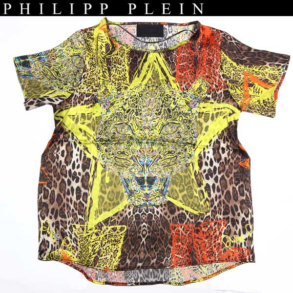フィリッププレイン PHILIPP PLEIN レディース レオパード シルク カットソー 半袖 Tシャツ "live windy" CW340404 17NJ neon jungle 14S【送料無料】【smtb-TK】