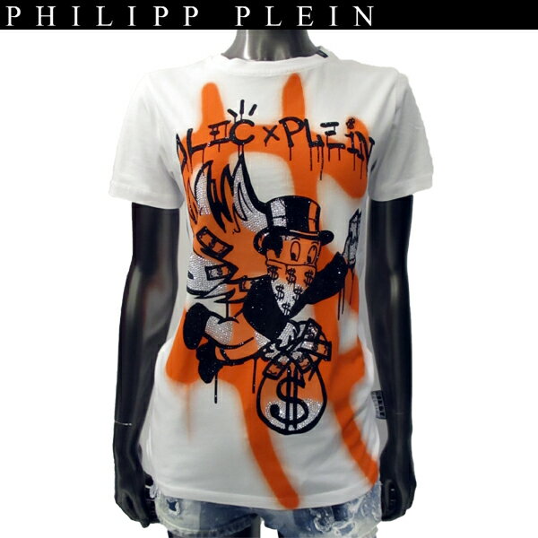 フィリッププレイン PHILIPP PLEIN レディース ラインストーン スマイル 半袖 Tシャツ "Arle" WTK0070 PJY006N 02 71S (R106920)【送料無料】【smtb-TK】